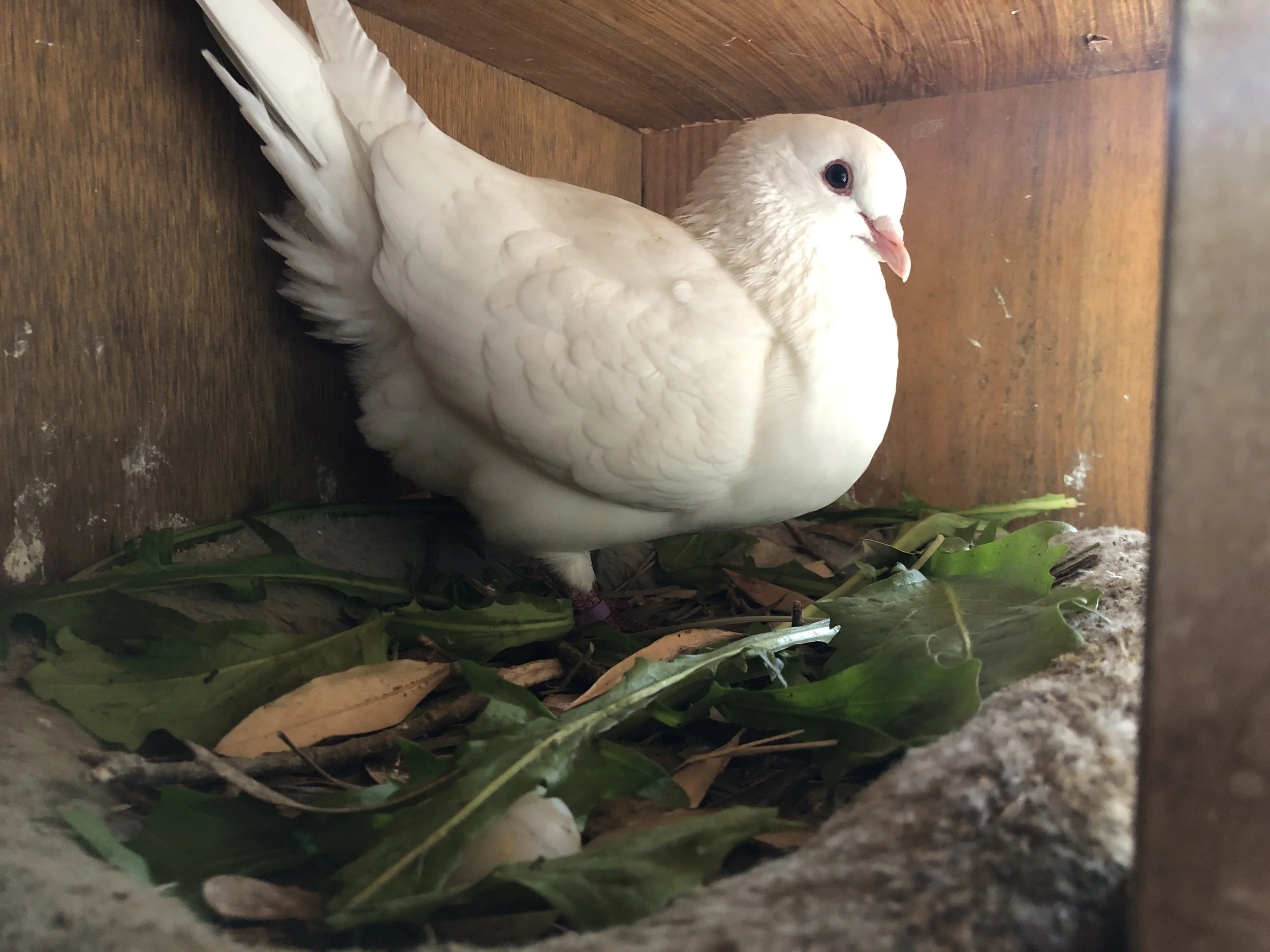 Most of our King Pigeons are rescued by San Francisco Animal Care and Control and come to live with us if they don’t get adopted. They are usually found on the streets and are rescued because they are domesticated and unable to survive for very long in the wild. They are often raised for meat, called squab, and are sold at wet markets. It is believed that some people purchase and release them, which is how they end up on the streets. Another way pigeons end up on the streets are ones that get lost after dove releases at weddings.